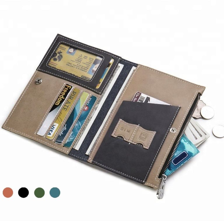 Вместимость (паспорт, билеты, сим-карты, фото, 4 отсеков для около 8 карт, 1 карман для денег и монет на молнии)