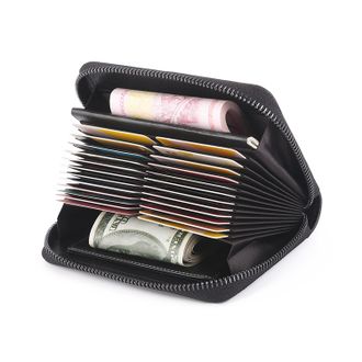 Вместимость: 24 отдела для пластиковых банковских карт и визиток, 2 отдела для купюр, документов и ключей