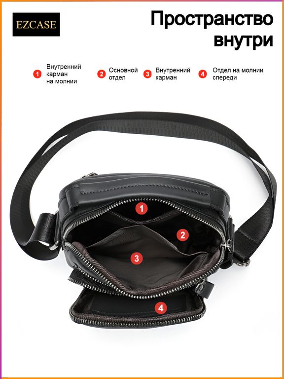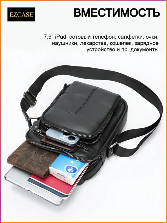 Вместимость (7,9" iPad, смартфон, кошелек, банковские карты, ключи, очки, наушники, зарядное устройство, лекарства и важные документы)